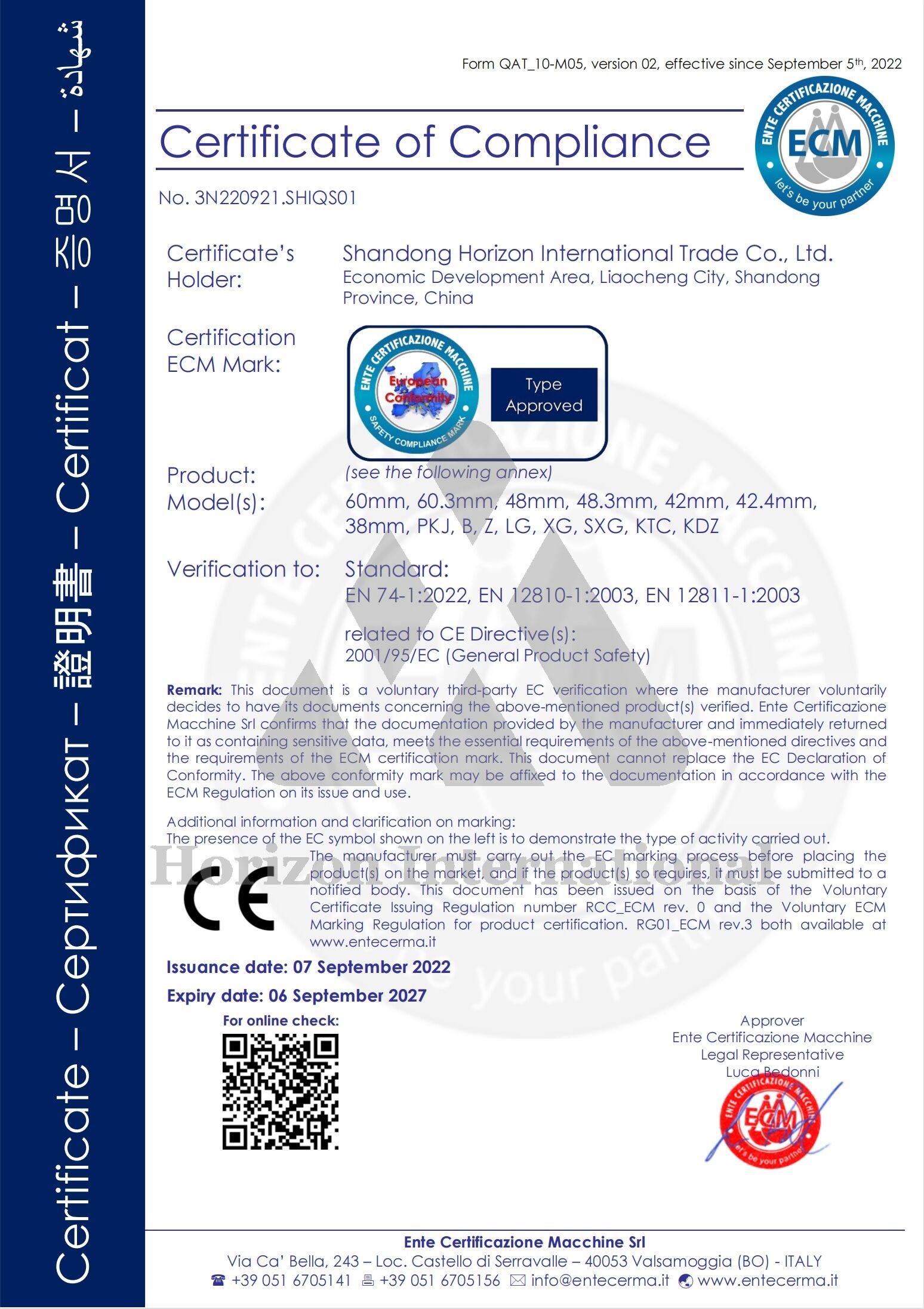 Компания Shandong Horizon получила сертификаты систем менеджмента ISO9001:2015, ISO14001:2015, ISO45001:2018 и сертификат CE. Сохранение отличного качества продукции и хорошего обслуживания - наше обещание всегда.